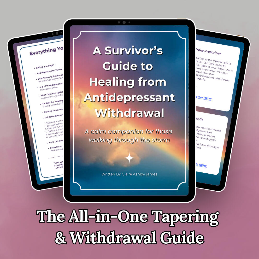 - DISCLAIMER -Everything I share here, in my book "Swallowed Whole", and in My "Guide to Surviving & Healing from Antidepressant Withdrawal" comes from my own lived experience and is offered for information and support only.It is not medical advice and should never replace guidance from a qualified, withdrawal-informed healthcare professional. Everyone’s journey is unique, and I cannot accept responsibility for any decisions made based on the content I provide. Please move at your own pace, prioritise your safety, and seek professional support where needed.